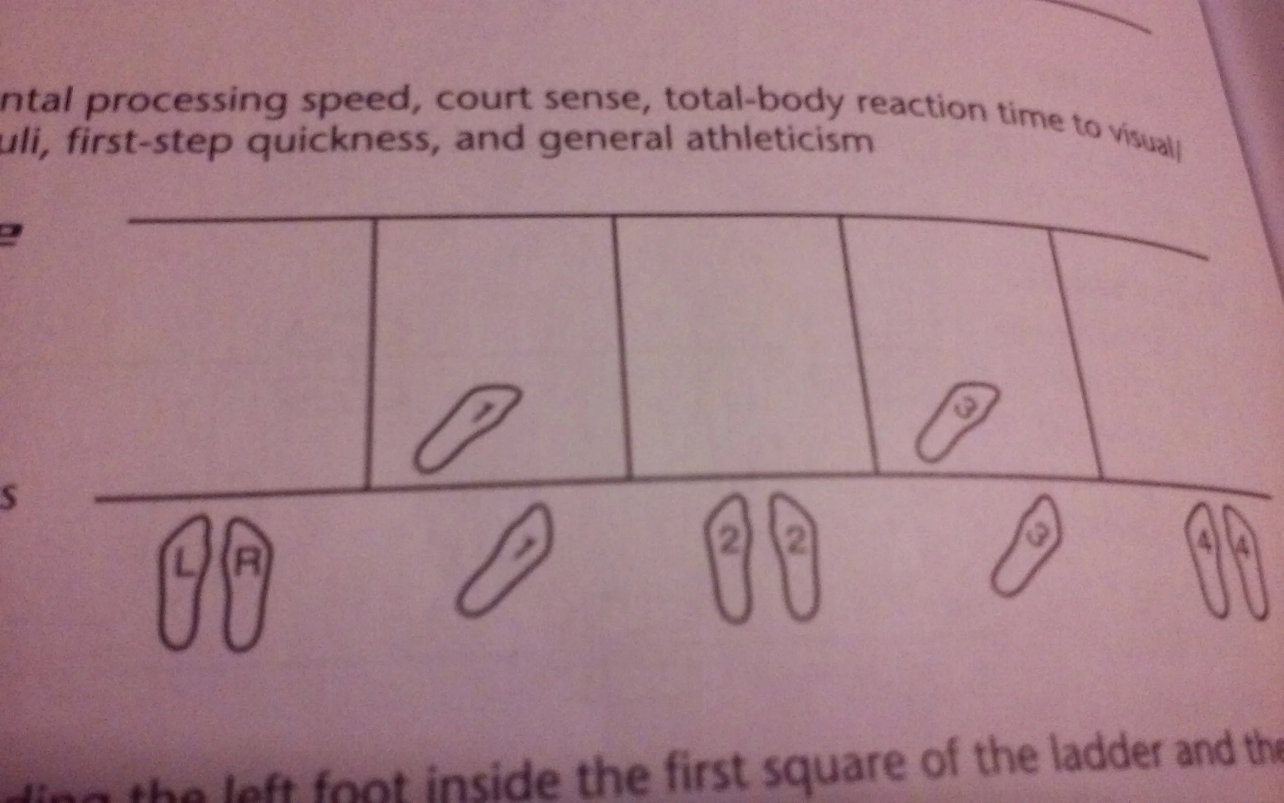 - Immediately cross over with the right foot to the second square of the ladder.